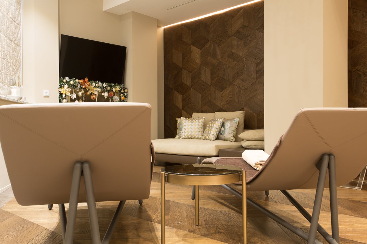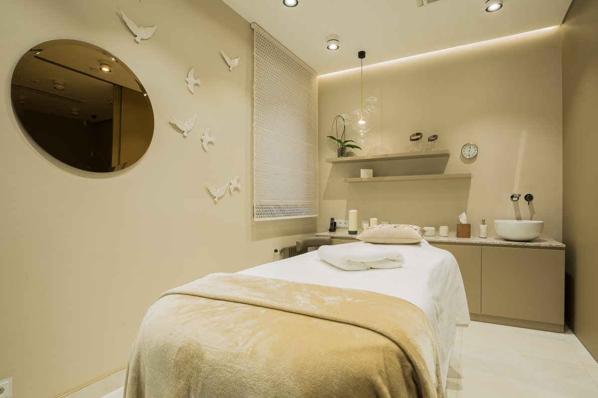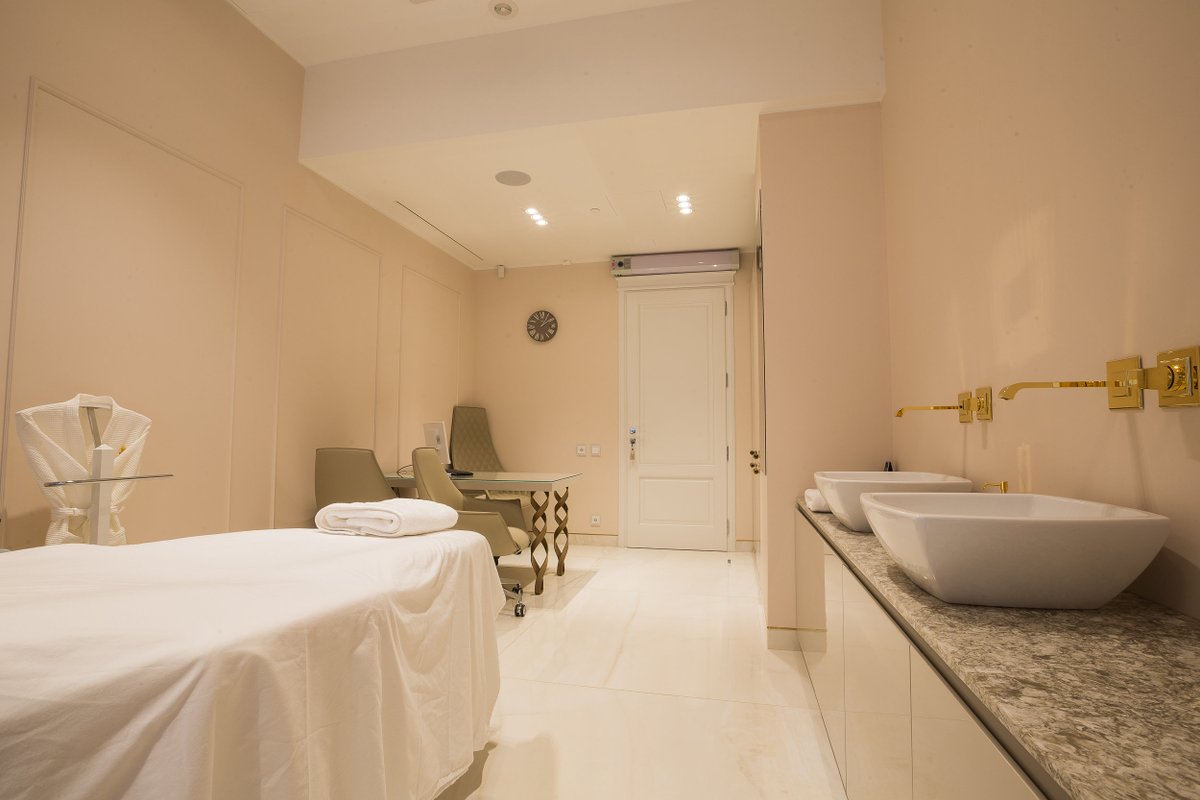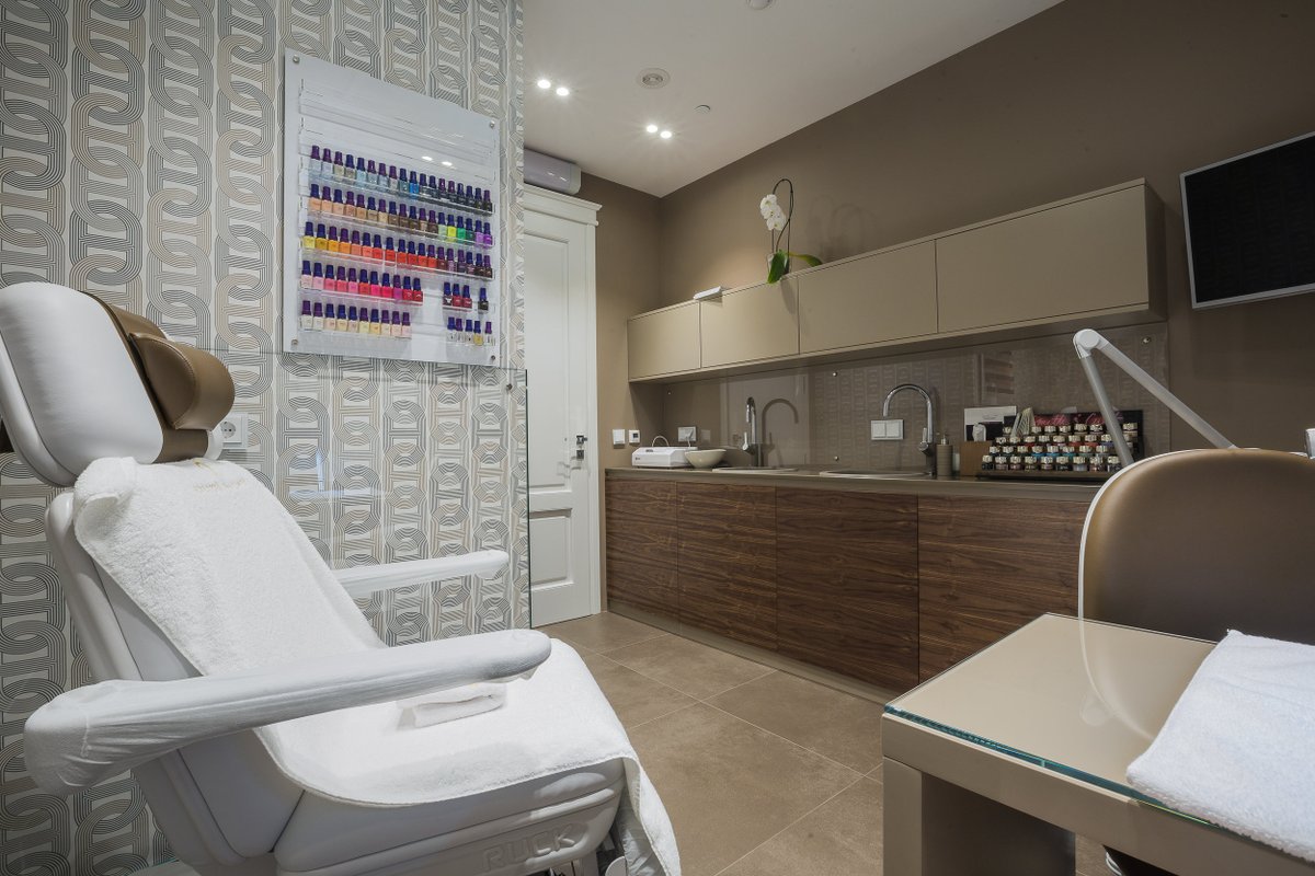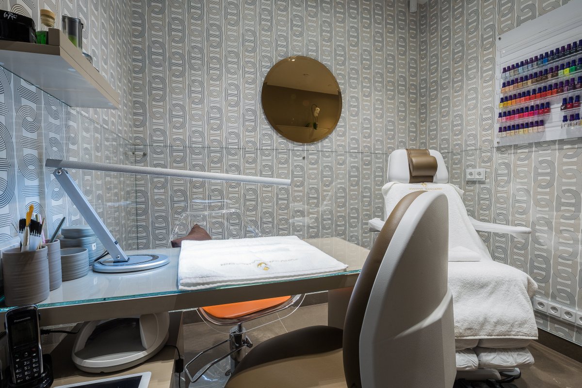 Также к услугам наших гостей антицеллюлитный массаж, массаж головы и лица, окрашивание волос, детский парикмахер, косметология, в том числе аппаратная, пилинг, обертывания, миостимуляция, контурная пластика, биоревитализация, мезотерапия, мезонити, инъекции ботокса, гиалуроновая кислота, макияж, коррекция формы бровей, окрашивание ресниц, татуаж, мелирование, тонирование, выпрямление, укладка и маски для волос, вечерние и свадебные прически, свадебный макияж, мужские стрижки, педикюр, в том числе аппаратный, спа-уход для ногтей. Принимает специалист по мезотерапии кожи головы.